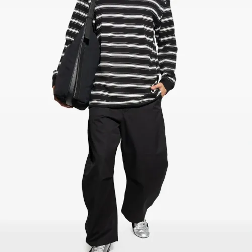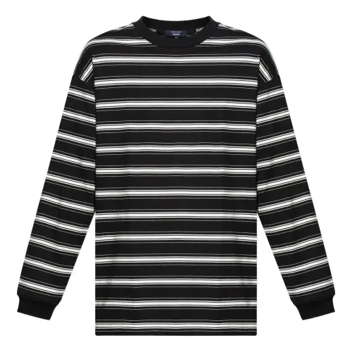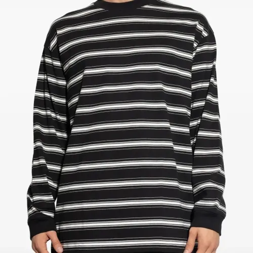 черный лонгслив с круглым вырезом, хлопковый, с ребристыми манжетами