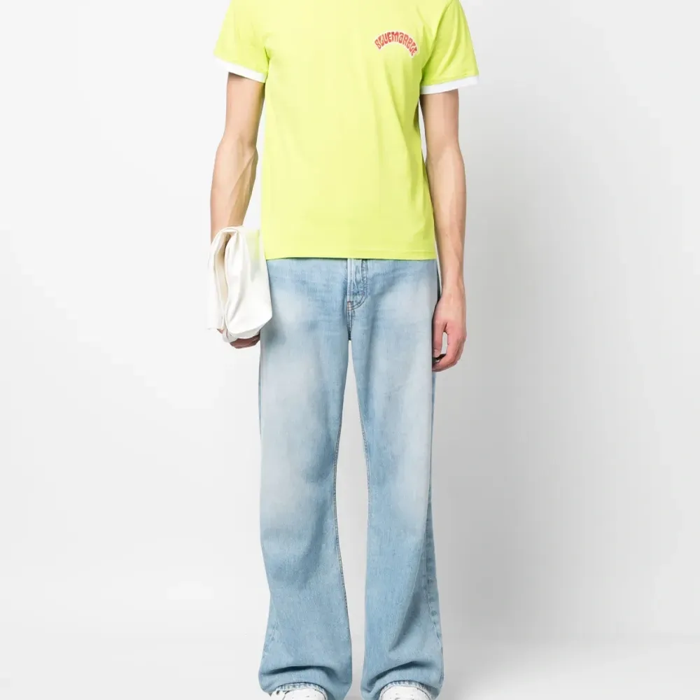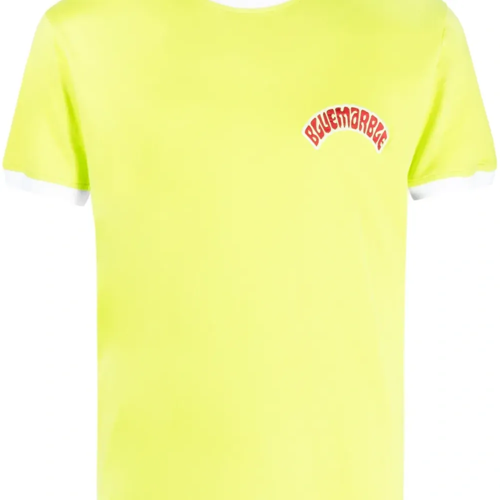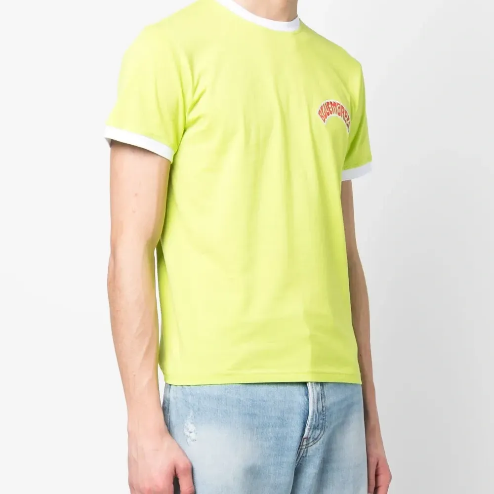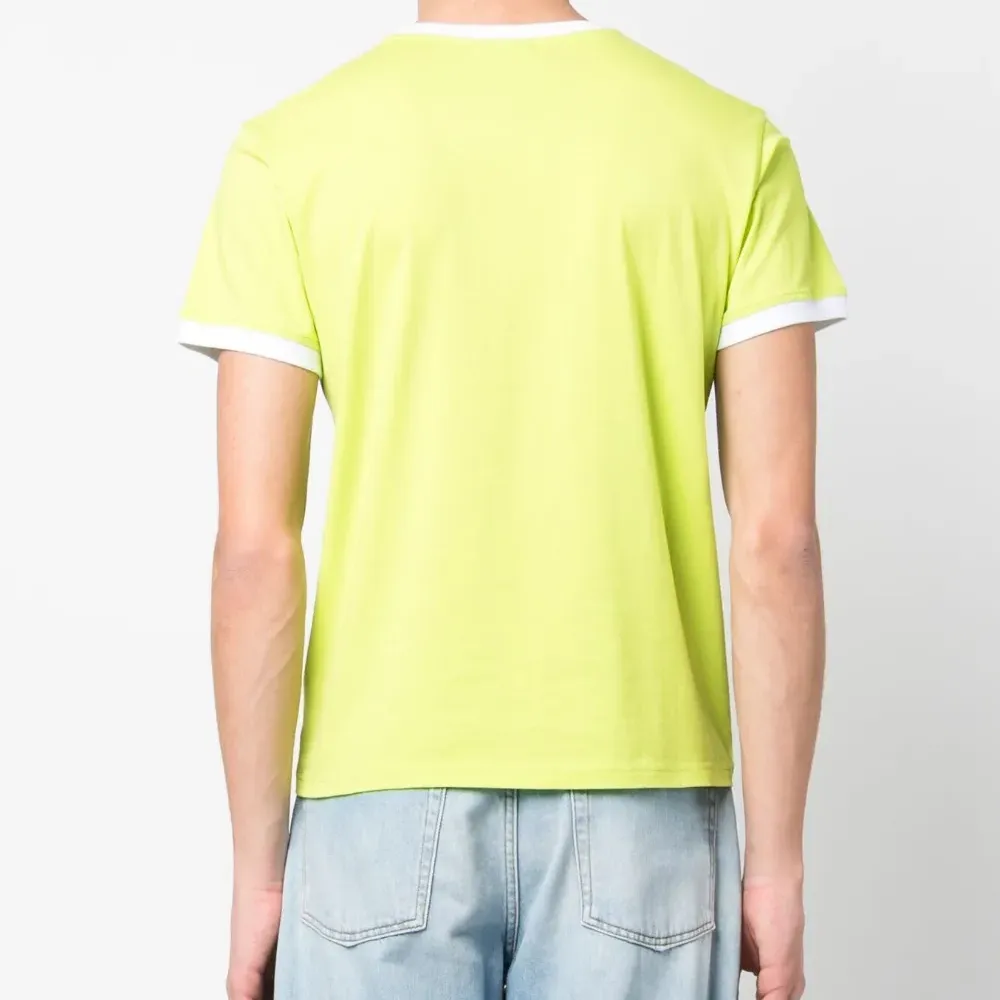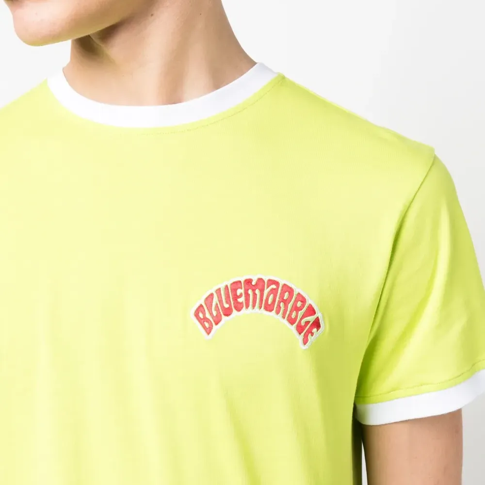 Салатовый, хлопок, принт с логотипом на груди, круглый вырез, короткие рукава и прямой подол.