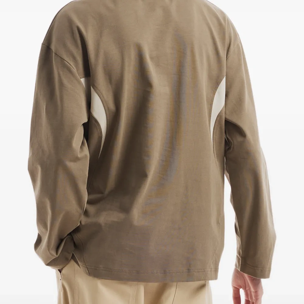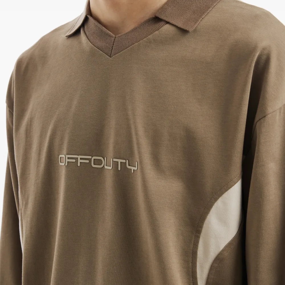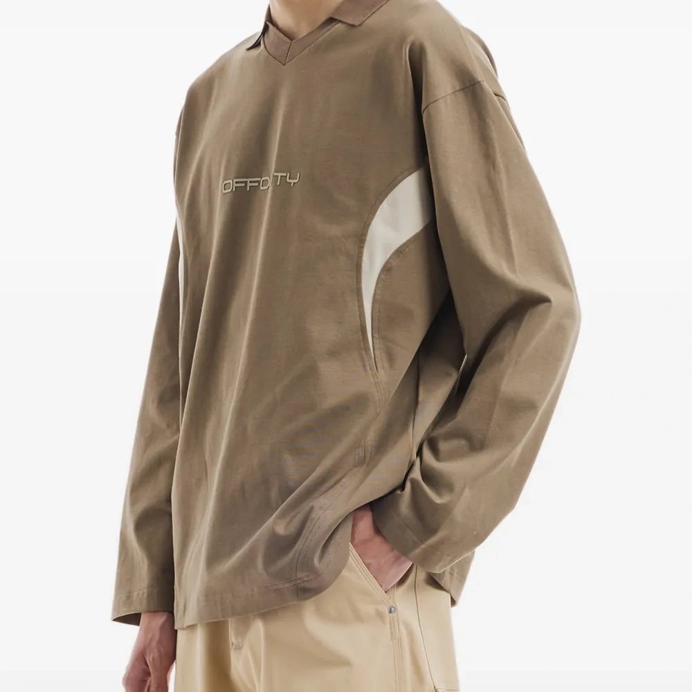 коричневый V-образный вырез, длинные рукава, контрастные вставки, тиснение логотипа в тон, классический воротник
