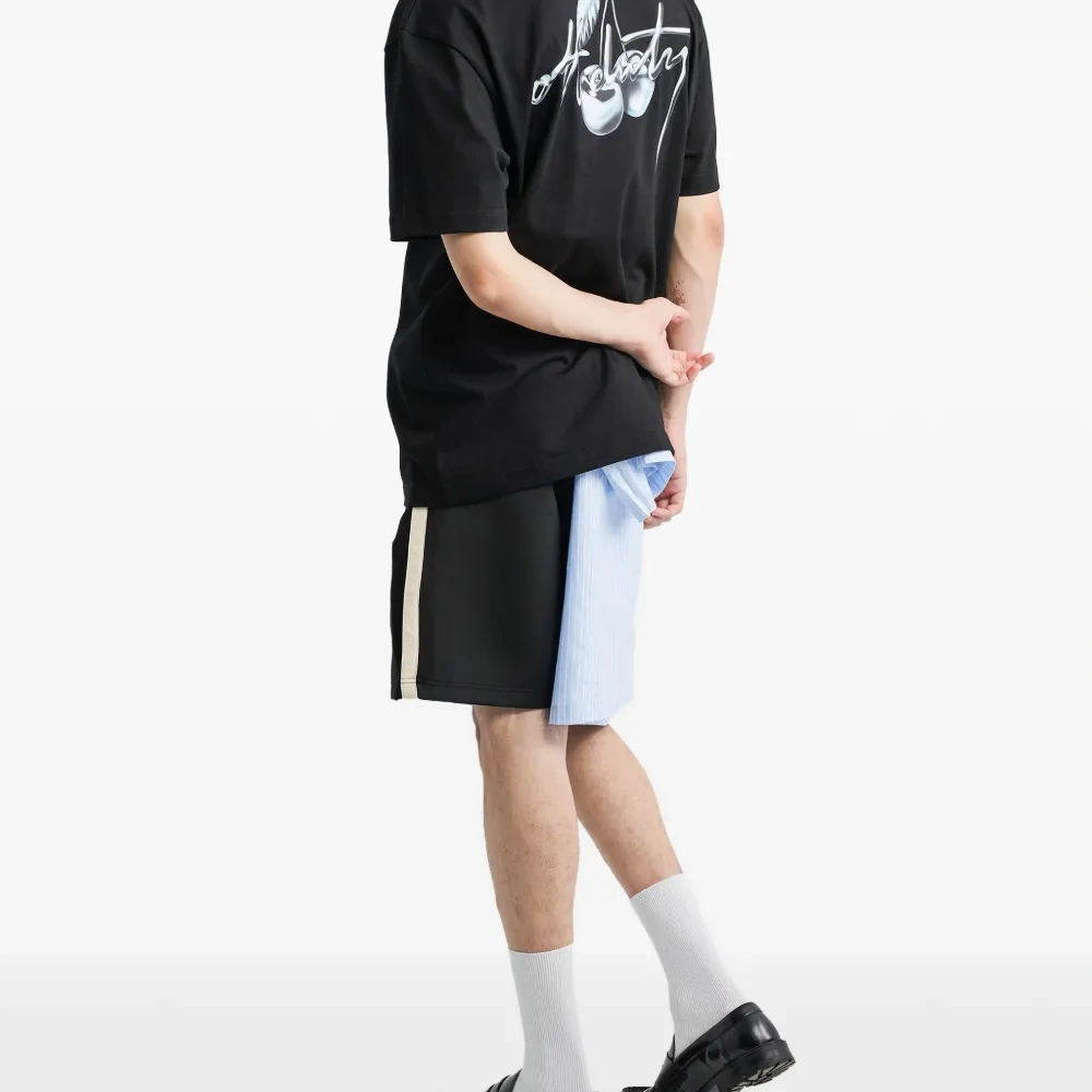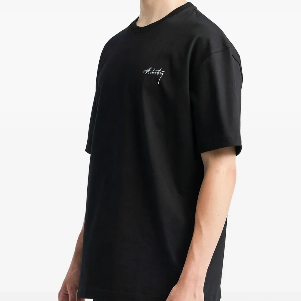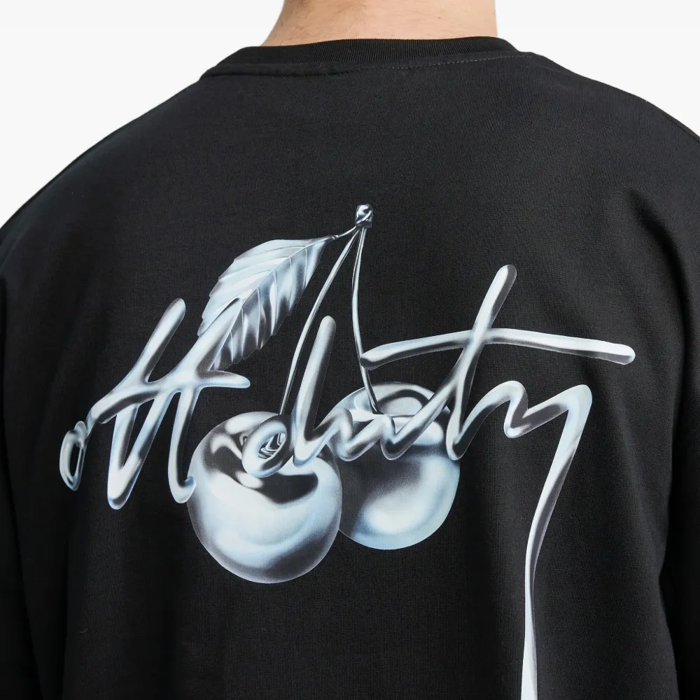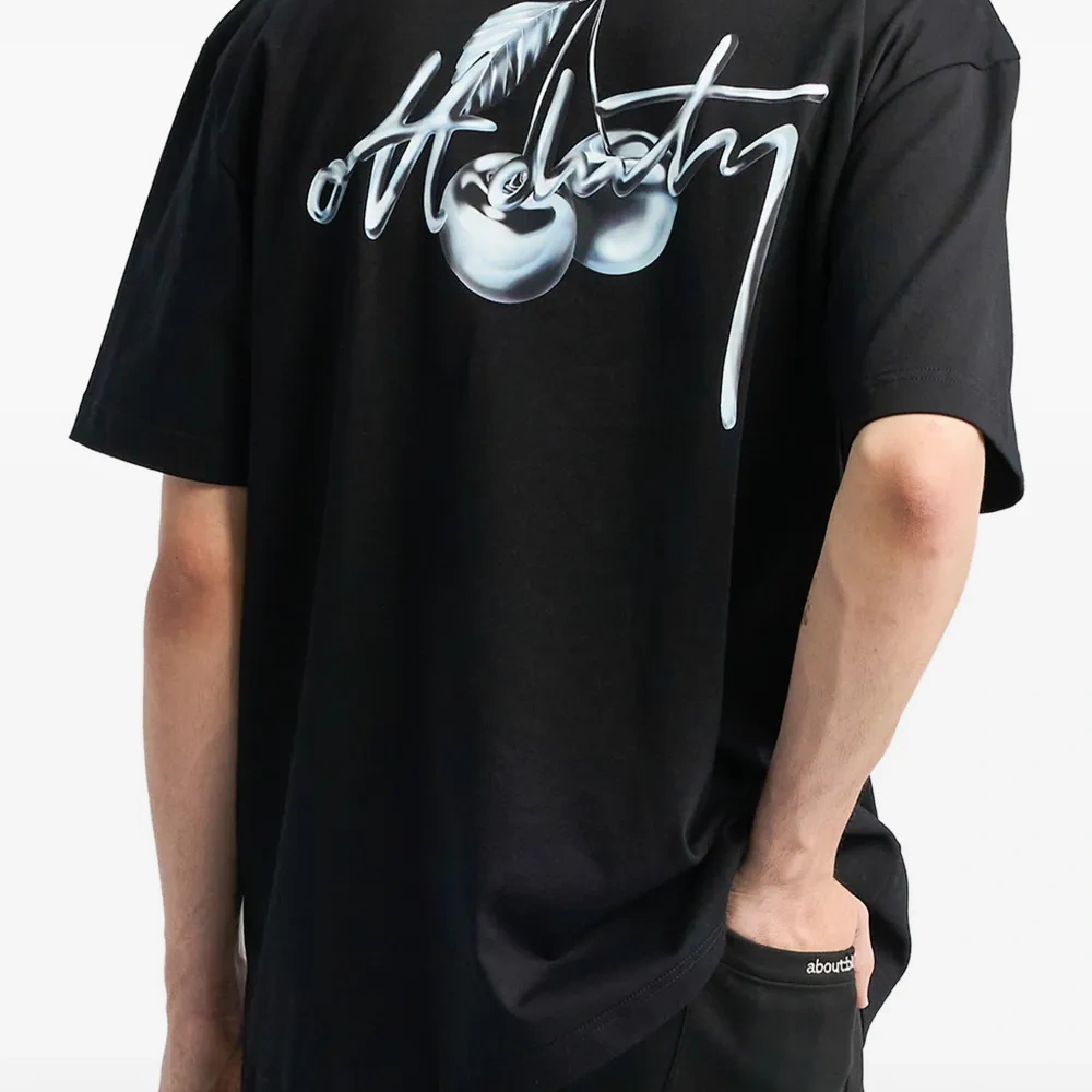 черная футболка с принтом вишни, круглый вырез, короткие рукава
