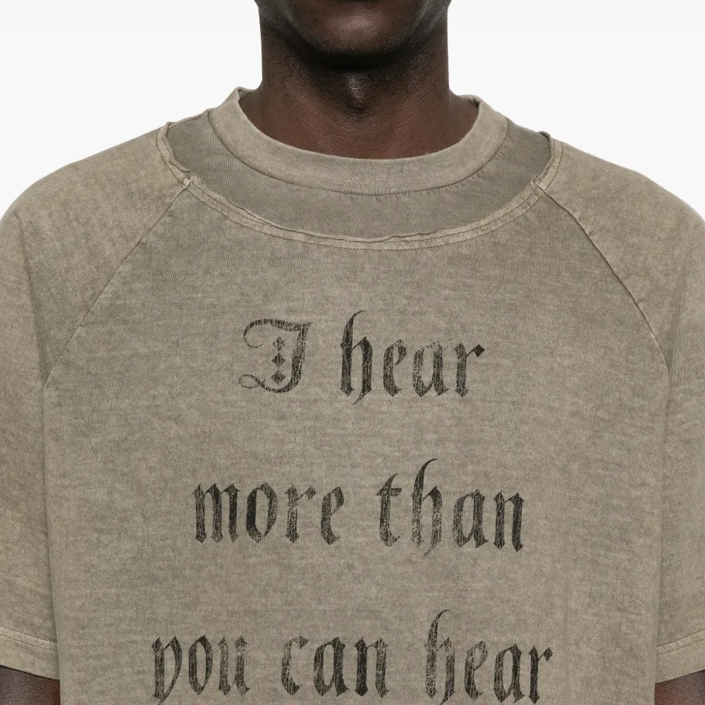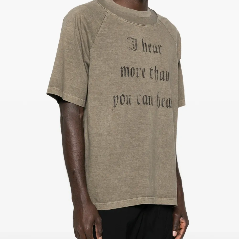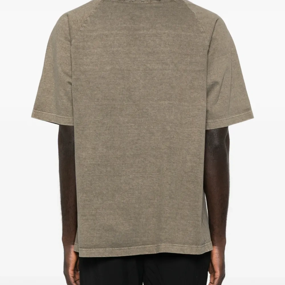 бежево-серая футболка с круглым вырезом и короткими рукавами