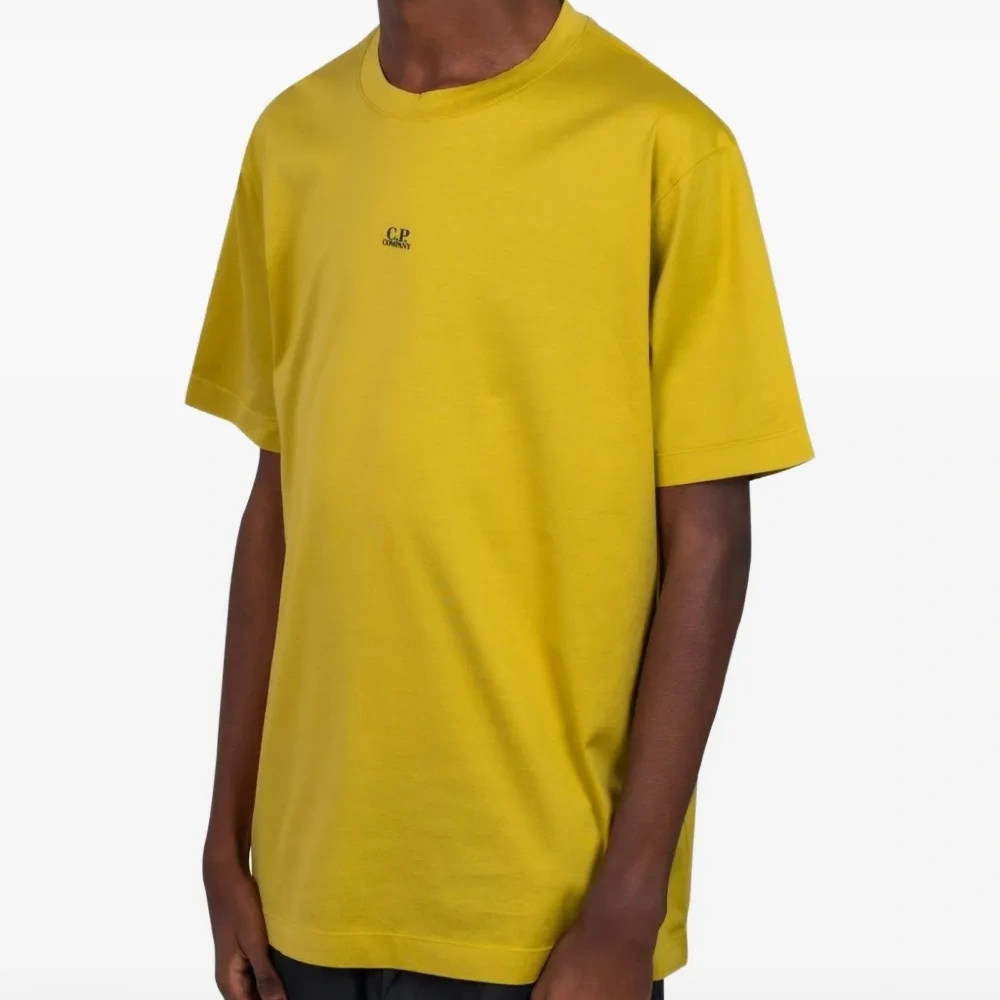 футболка цвета антик-мох с круглым вырезом и короткими рукавами. C.P. Company рекомендует снимать все съемные аксессуары перед стиркой.