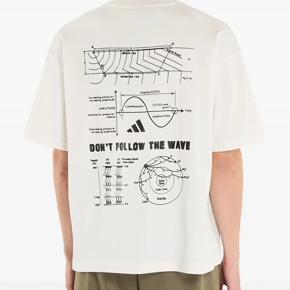 белая футболка с графическим принтом, круглым вырезом и короткими рукавами