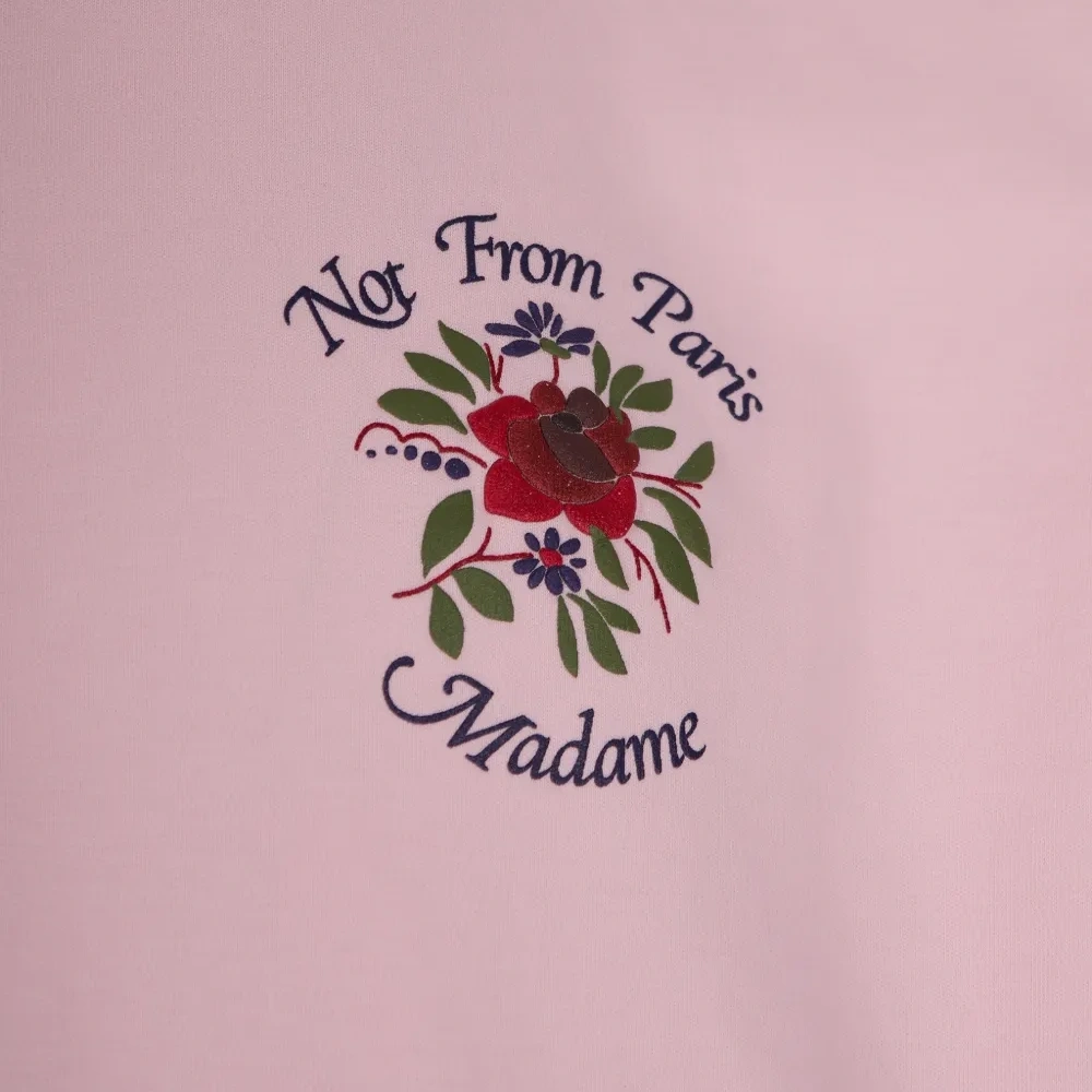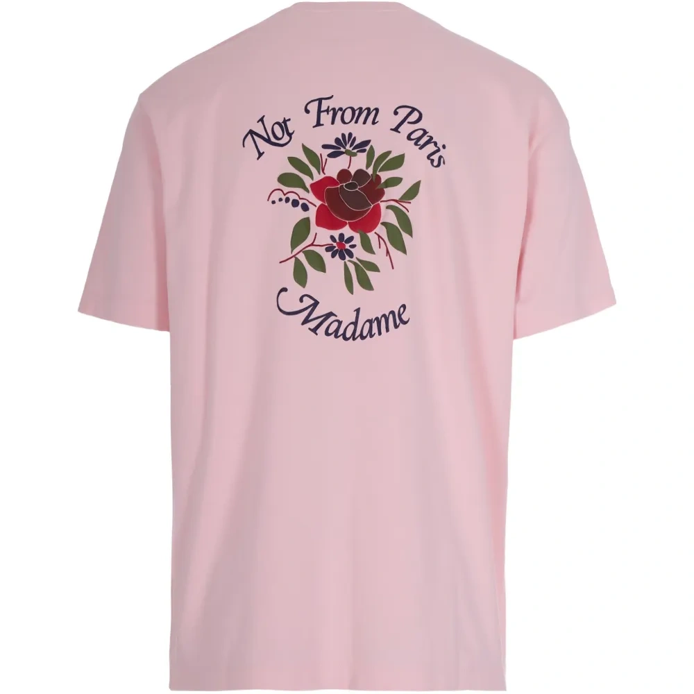 розовый с цветочным принтом, круглый вырез, короткие рукава