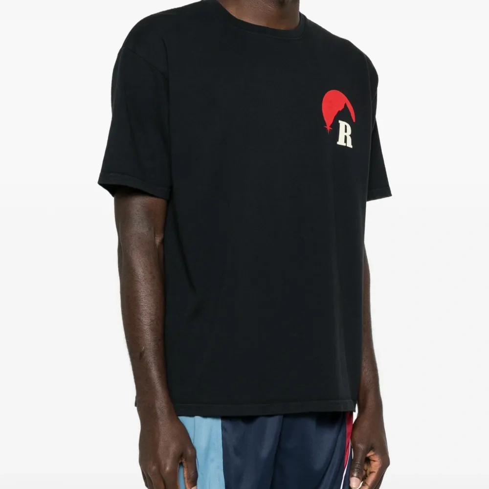 черная хлопковая футболка с логотипом, графическим принтом, круглым вырезом и короткими рукавами