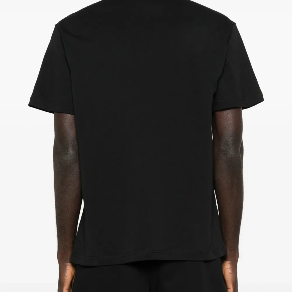 чёрная футболка с круглым вырезом, короткими рукавами и принтом-логотипом