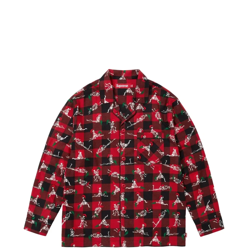 красная рубашка в клетку с длинными рукавами, нагрудным карманом, эластичной талией и принтом по всей поверхности
