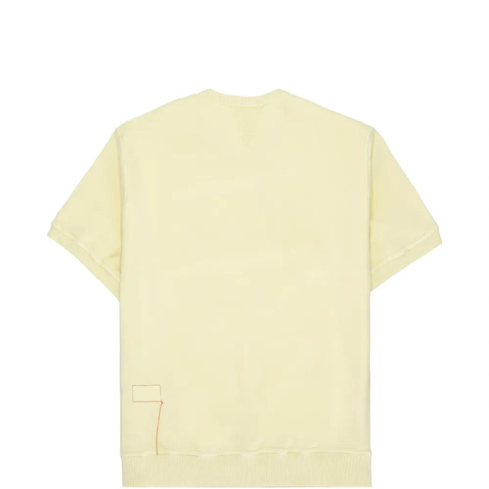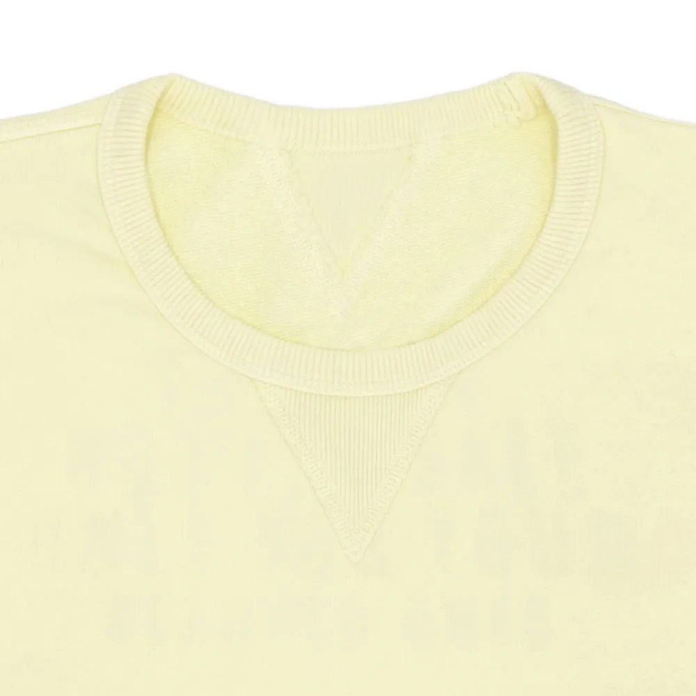 жёлтая футболка с короткими рукавами, круглым вырезом и ребристыми краями