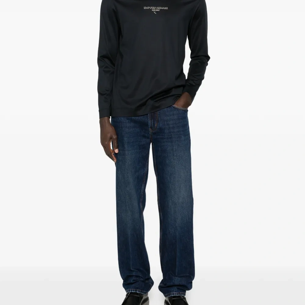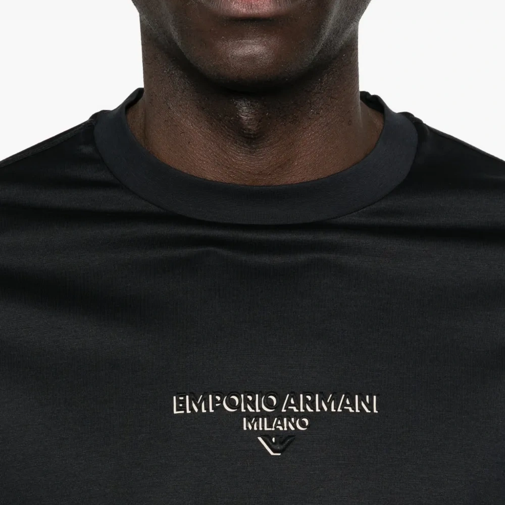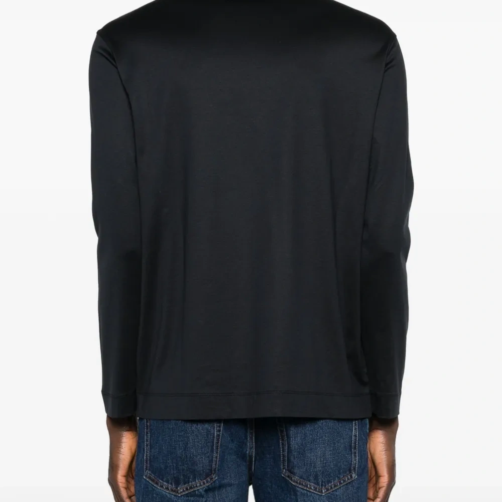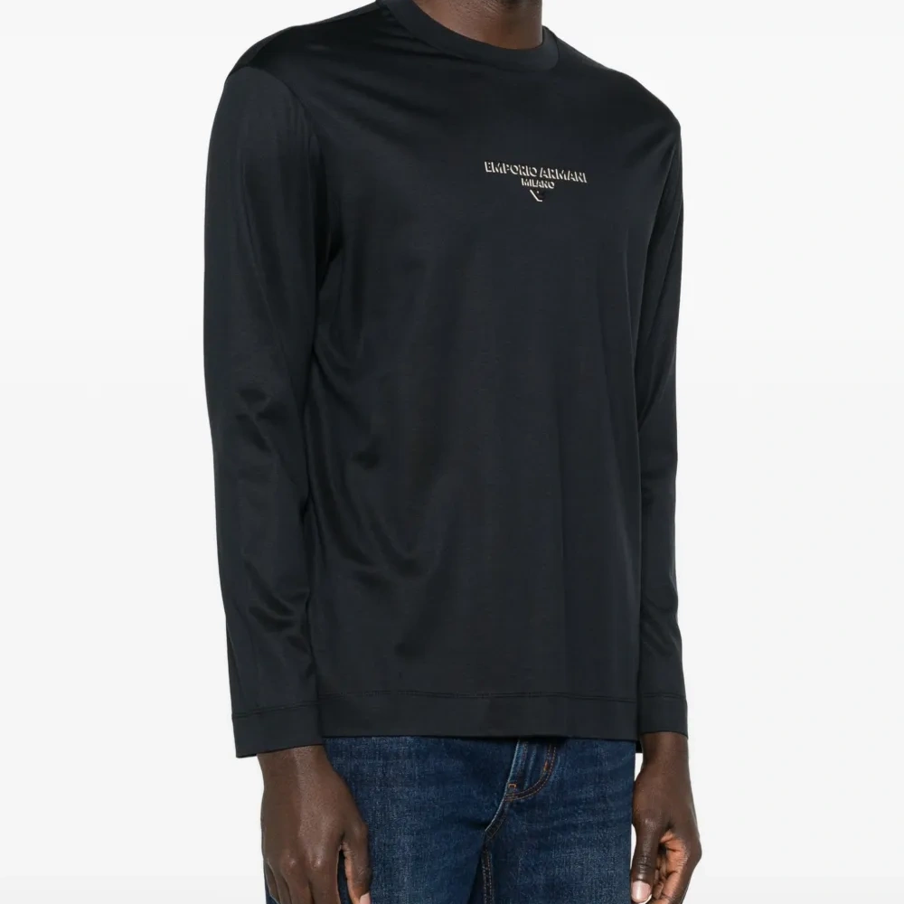 черная футболка с логотипом, длинными рукавами и круглым вырезом