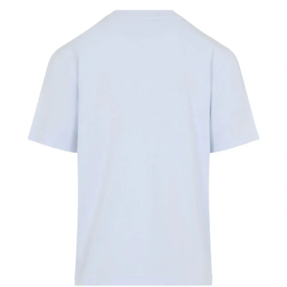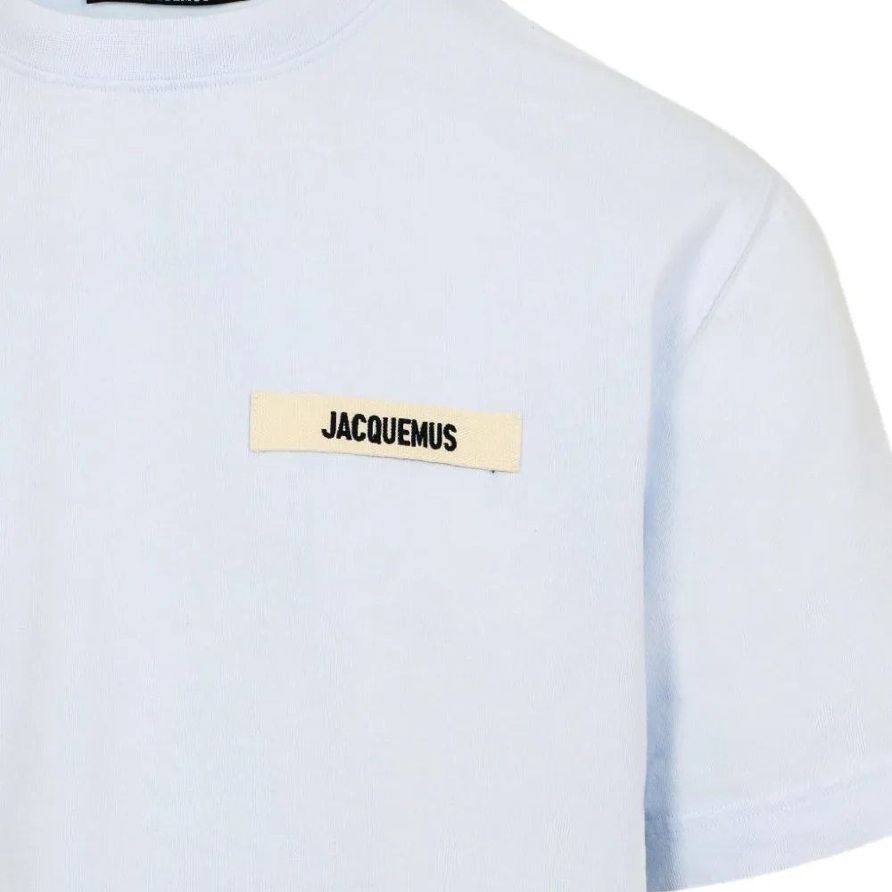 синий хлопковый футболка с короткими рукавами, круглым вырезом и нашивкой на груди