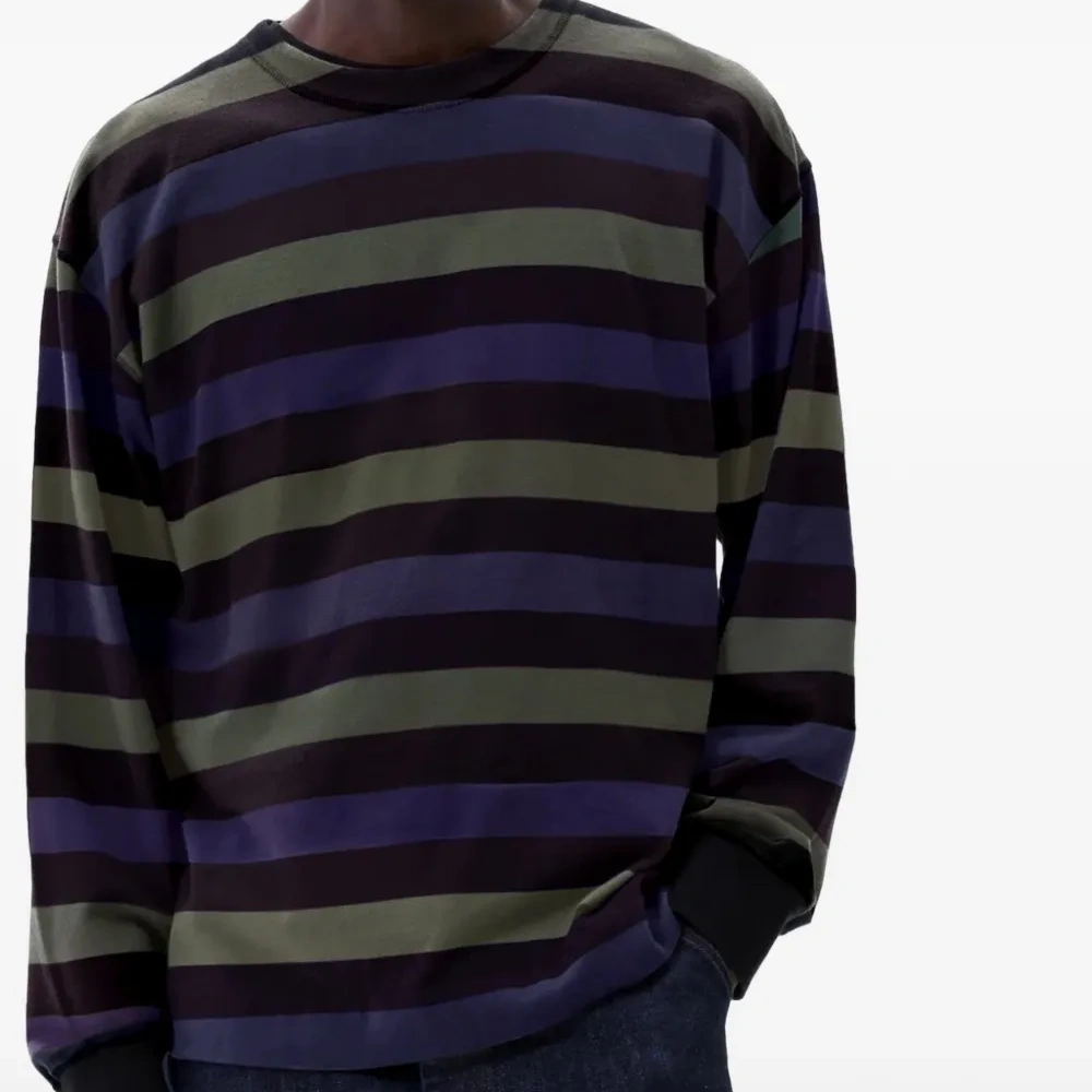 черный/зеленый в полоску, круглый вырез, длинные рукава, ребристые манжеты