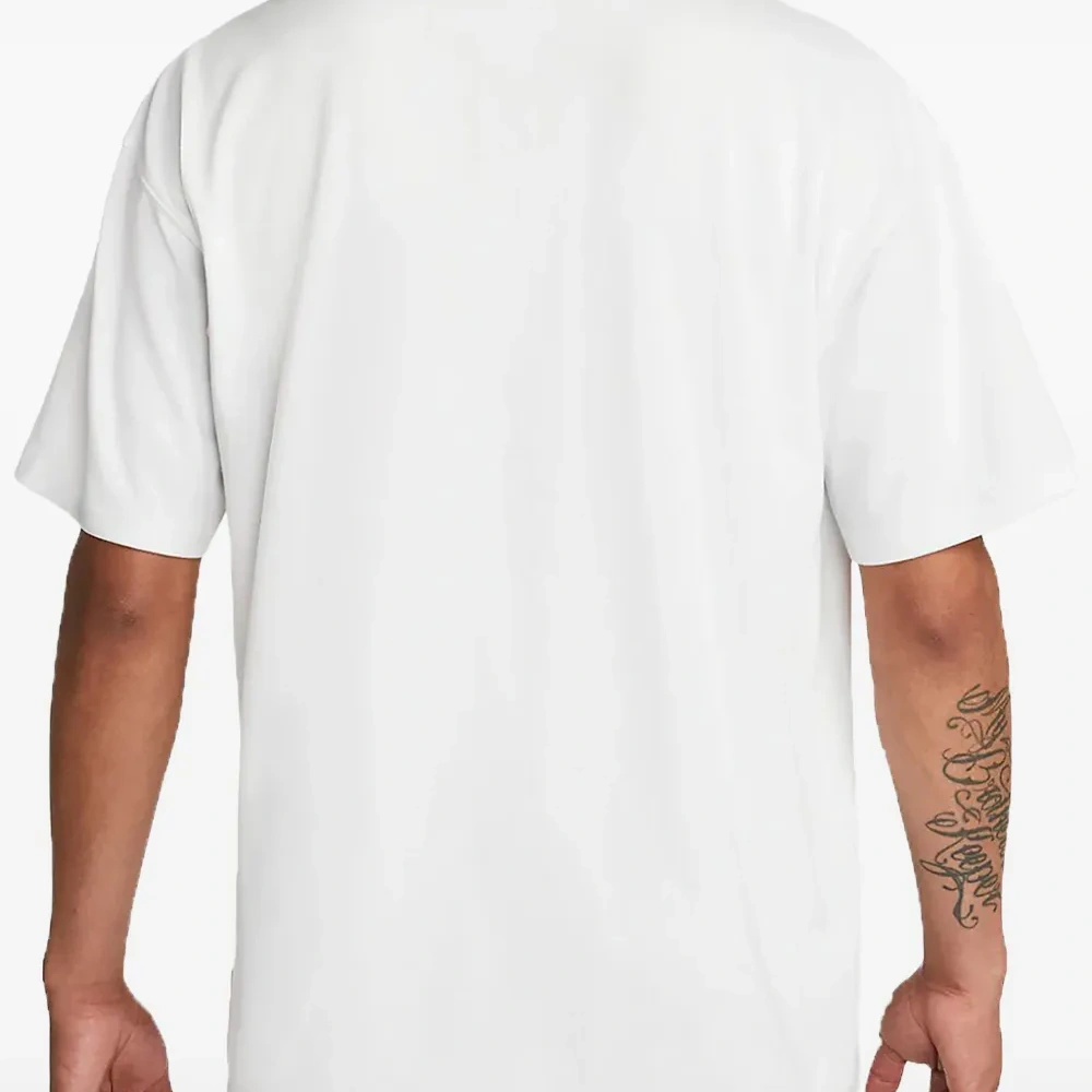 белая футболка с графическим принтом, круглым вырезом, короткими рукавами и прямым подолом