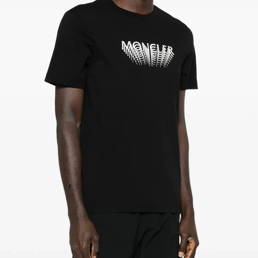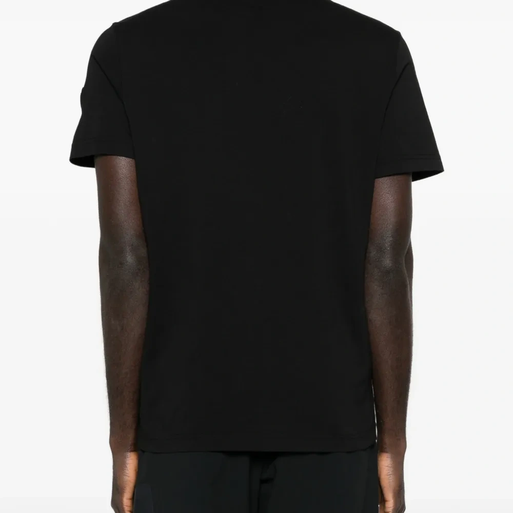 черная хлопковая футболка с логотипом, короткими рукавами и круглым вырезом