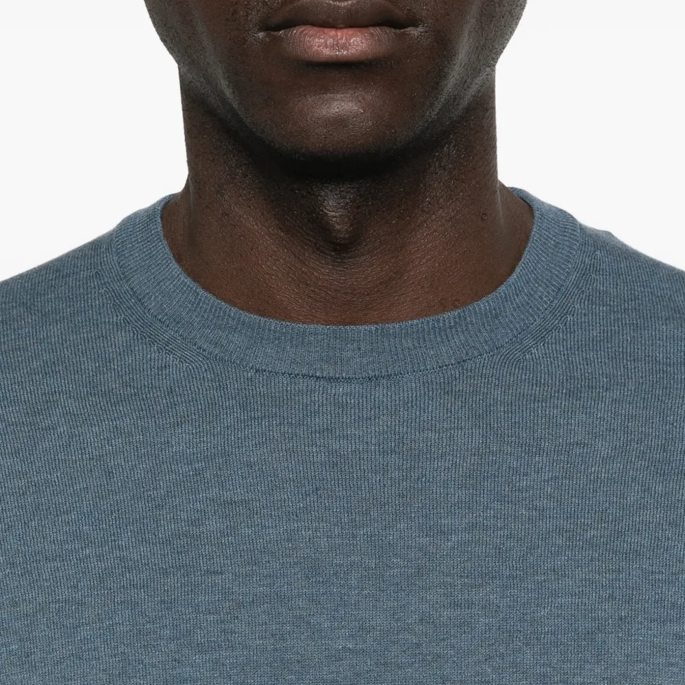 синий круглый вырез короткие рукава вязаная фактура ребристый низ ребристые манжеты