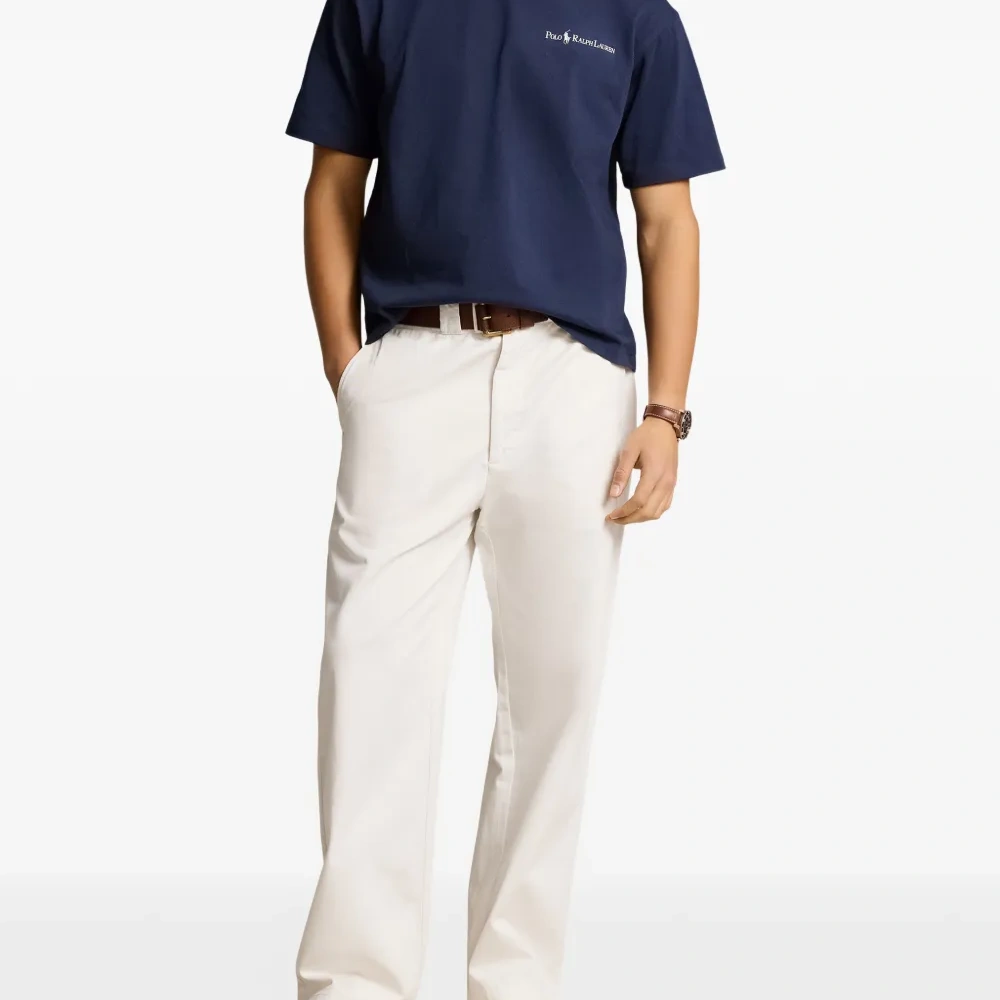 синий топ с деталями логотипа, круглым вырезом и короткими рукавами