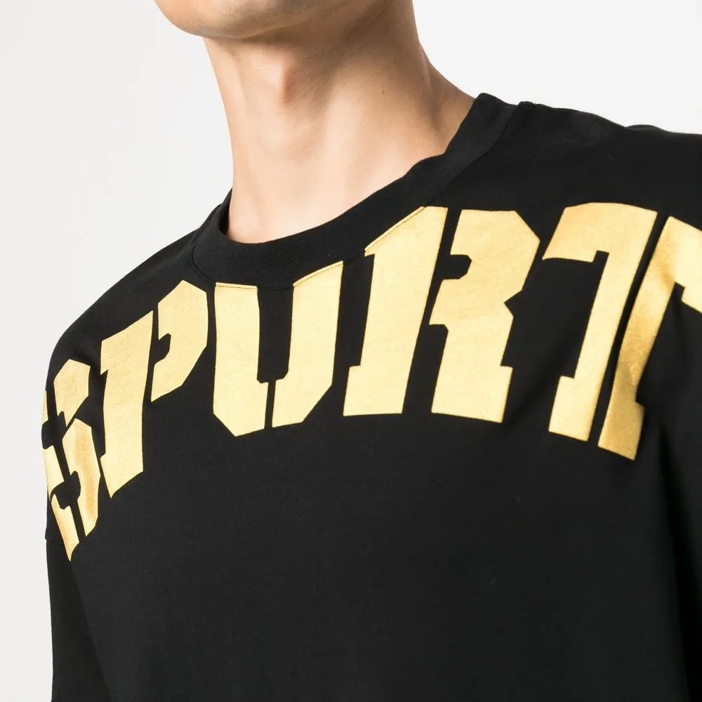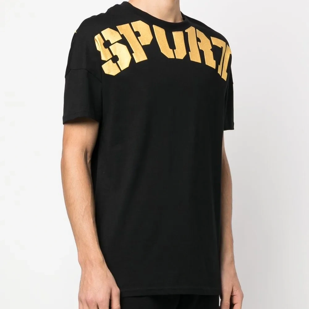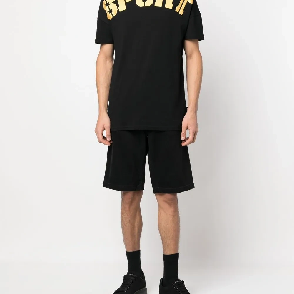 Ткань джерси, логотип спереди, круглый вырез, короткие рукава и прямой подол.