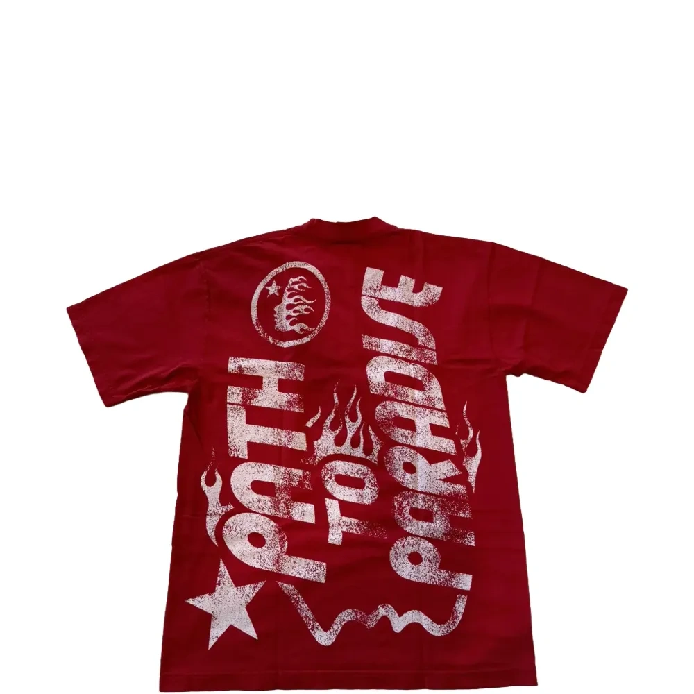 бордовая футболка с круглым вырезом, короткими рукавами и графическим принтом