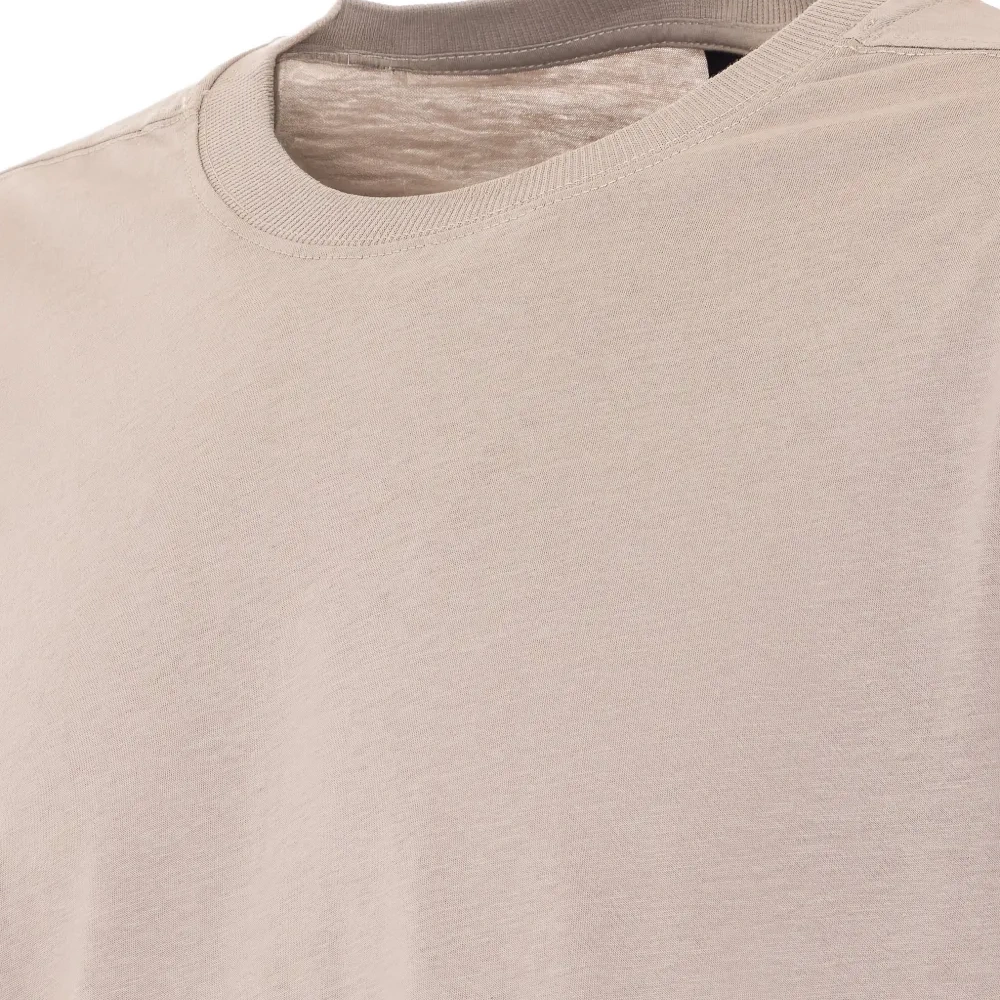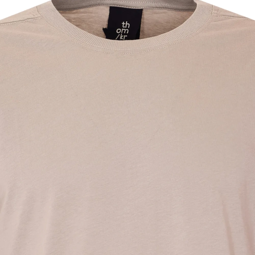 бежевый свитер свободного кроя с круглым вырезом, короткими рукавами и швами-декором