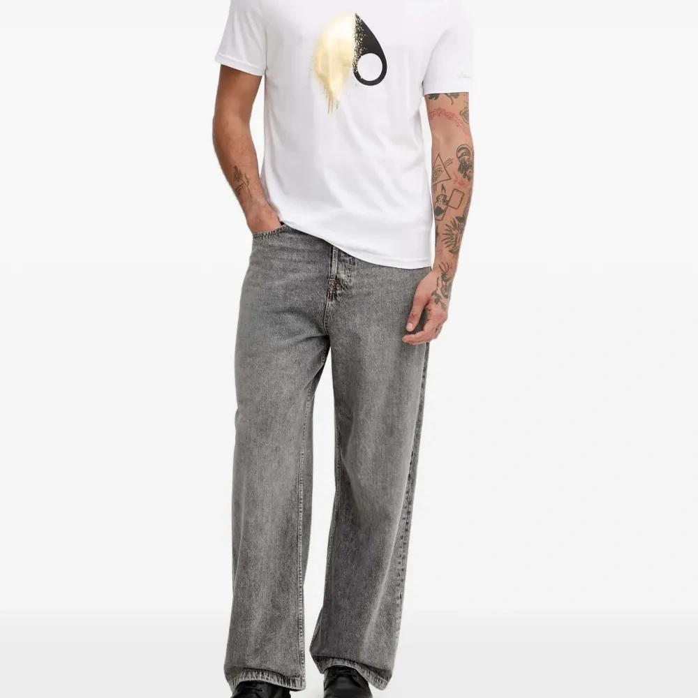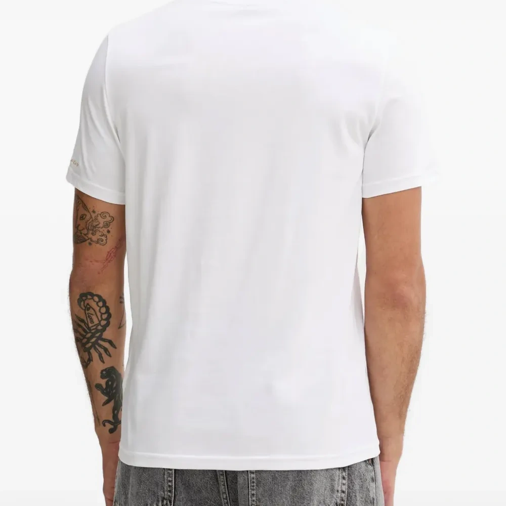 белая футболка с графическим принтом, круглым вырезом и короткими рукавами