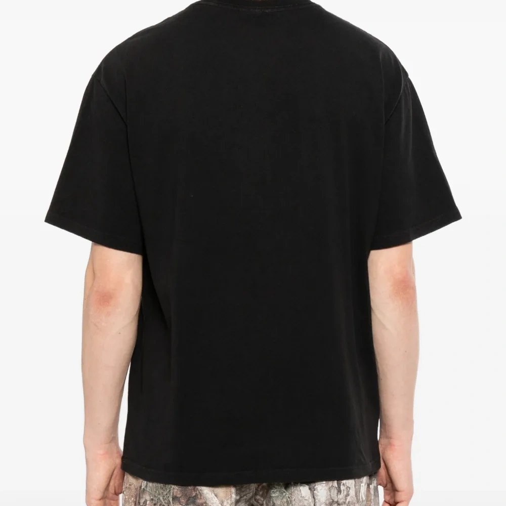 черная футболка с круглым вырезом, короткими рукавами и прямым подолом, 100% хлопок