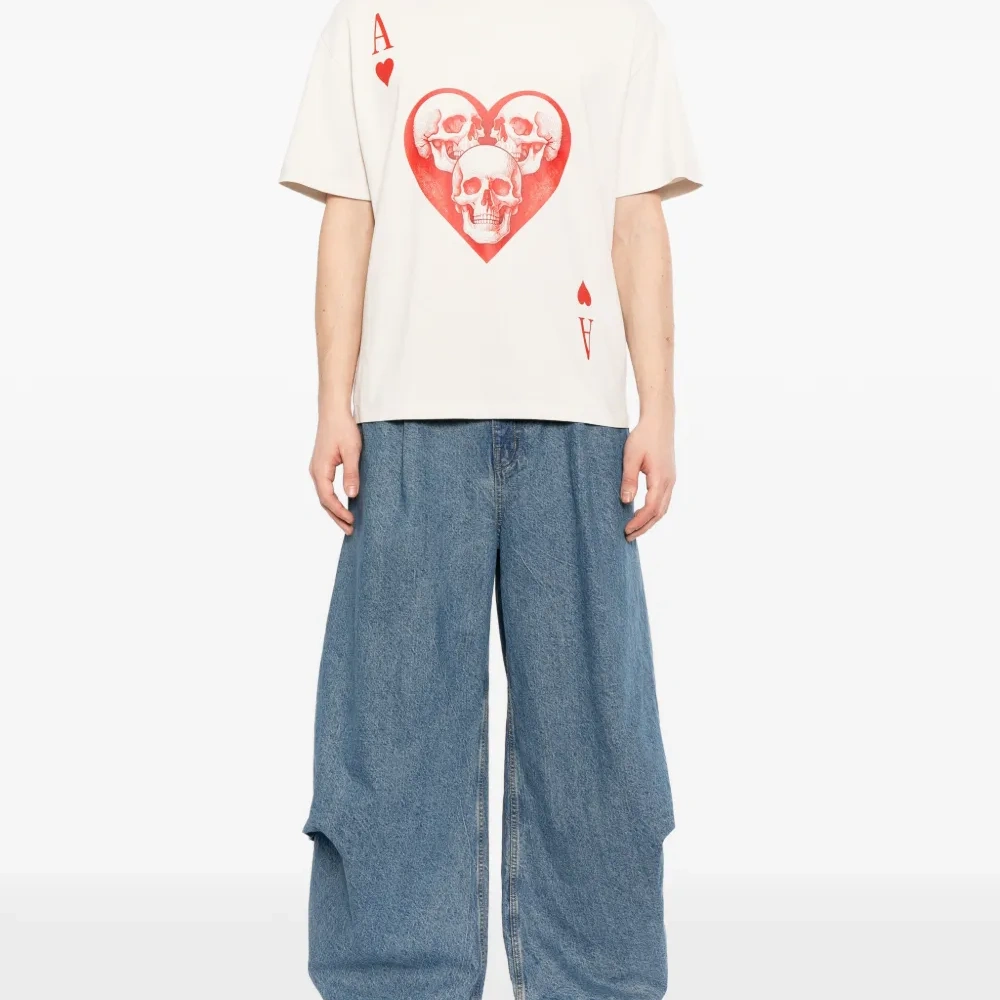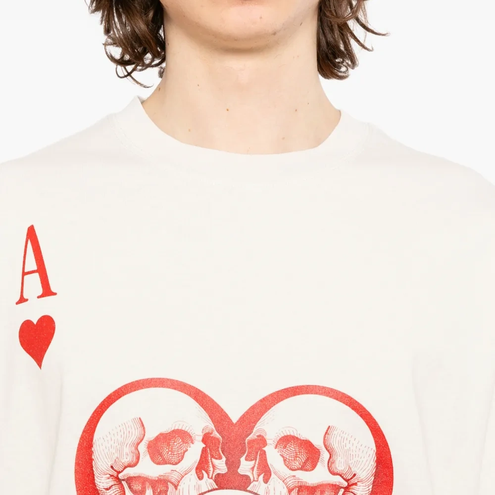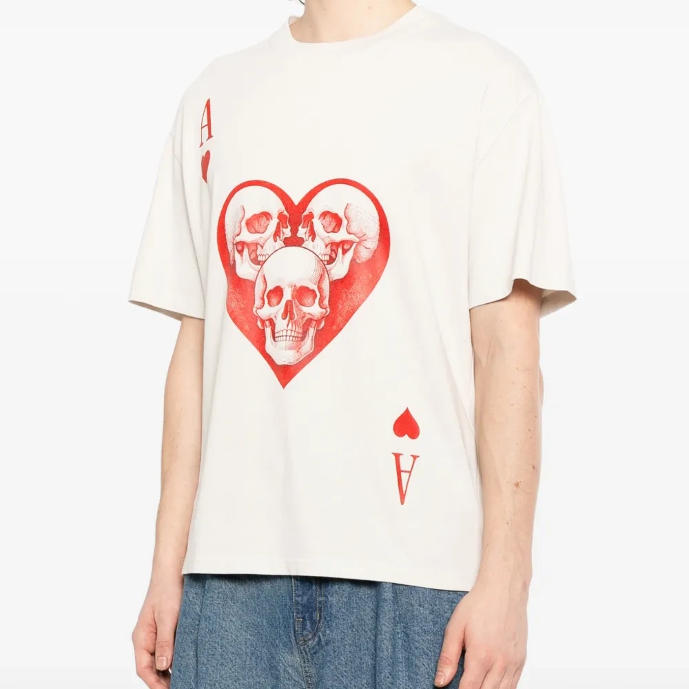 слегка белая (молочная) футболка с изображением сердца и черепа, короткие рукава, круглый вырез