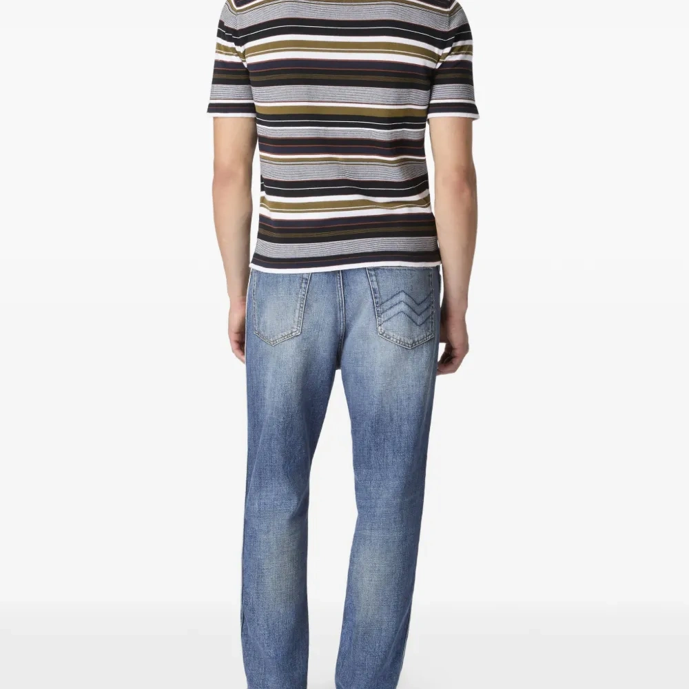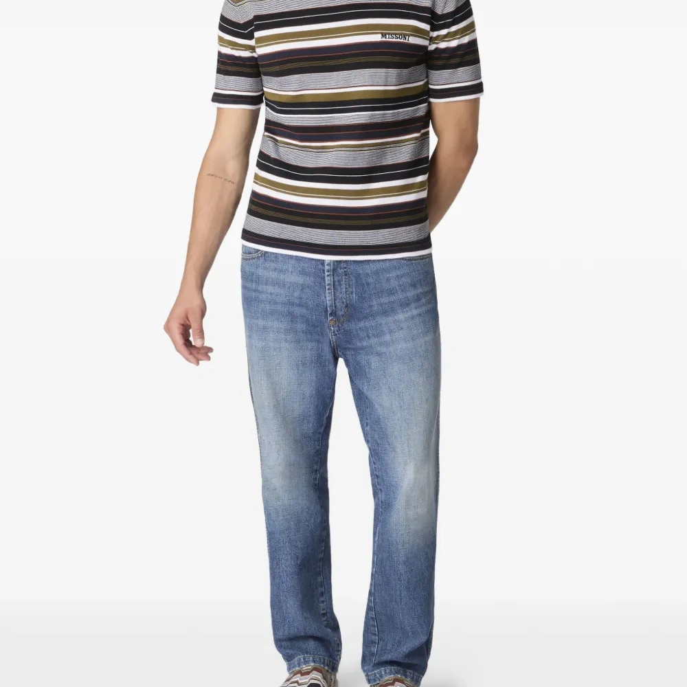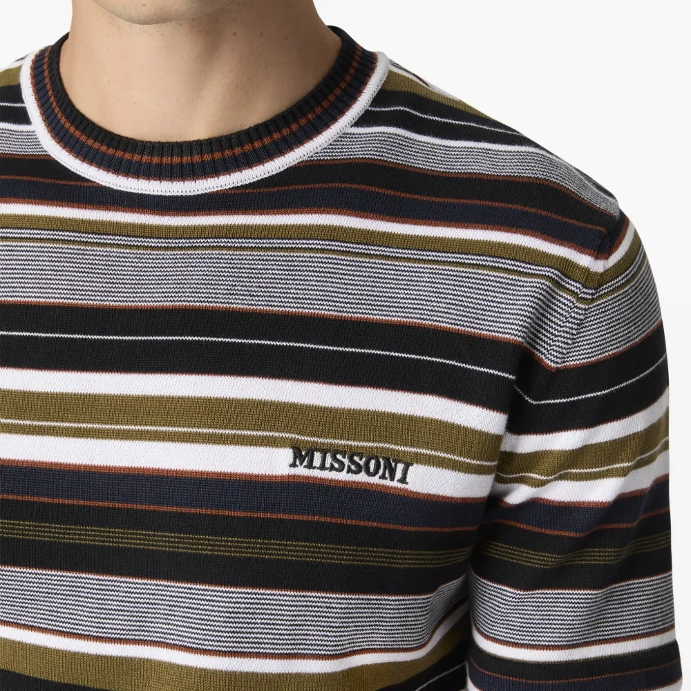 серый в полоску, круглый вырез, короткие рукава, вышитый логотип, ребристые детали. Полученный вами товар может немного отличаться от изображённого на фотографии. Это связано с ручной работой, благодаря которой изготавливаются все изделия Missoni.