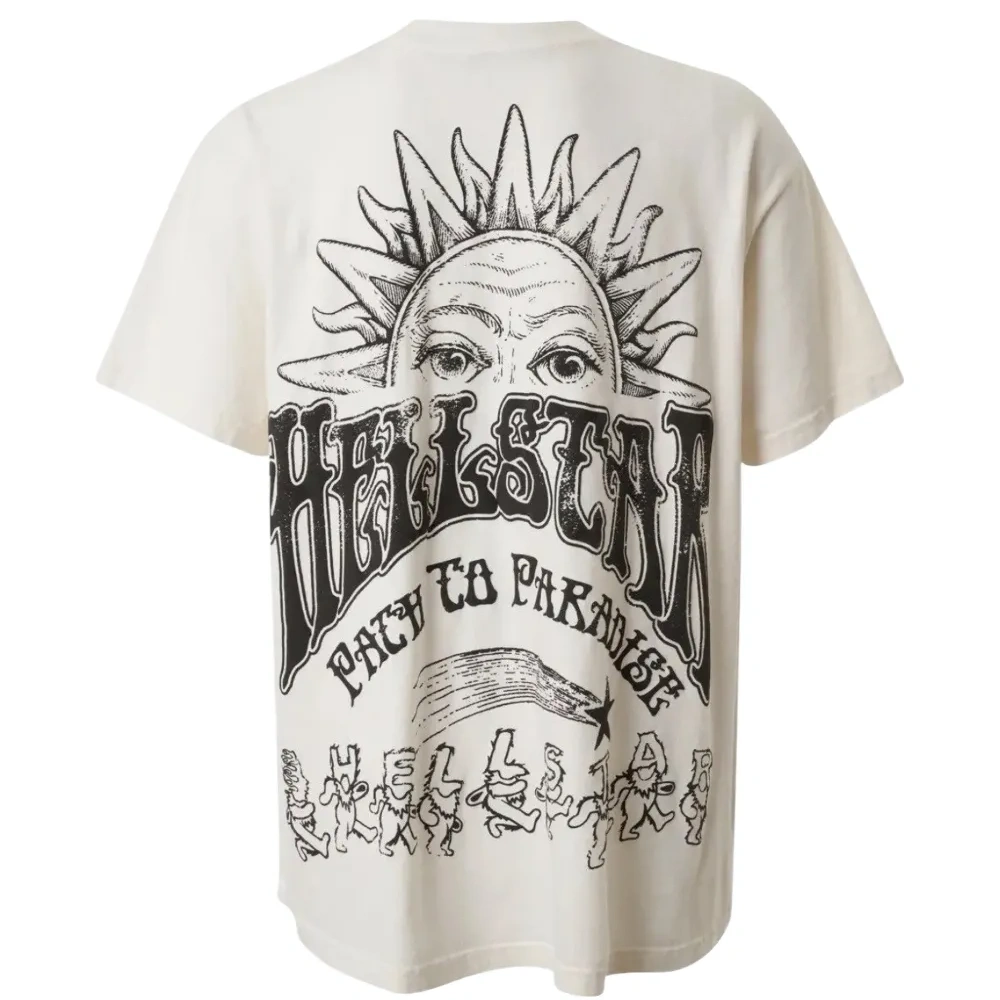белая футболка с круглым вырезом и графичным принтом, с короткими рукавами
