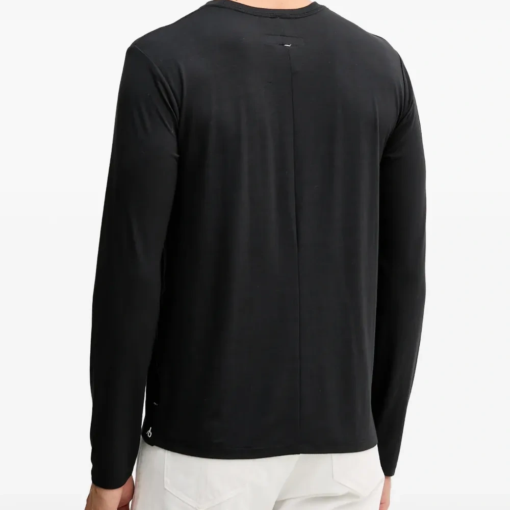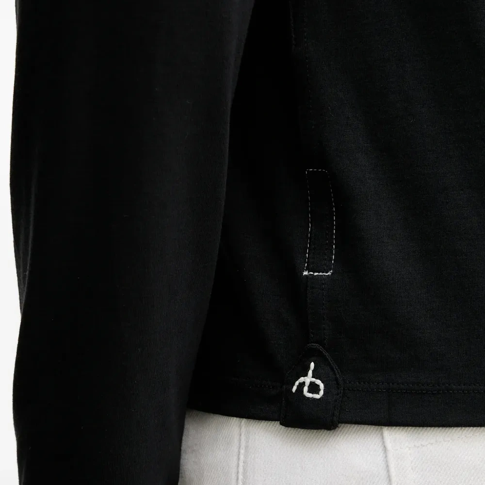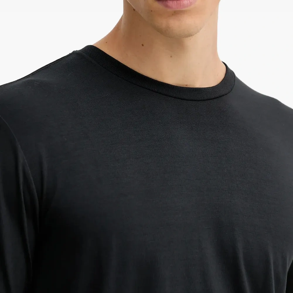 чёрный лонгслив с круглым вырезом и логотипом