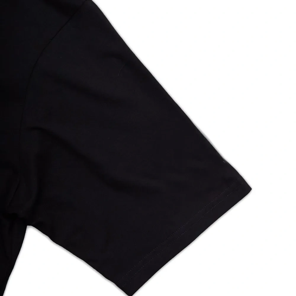 черная футболка с цветочной вышивкой, нагрудным карманом, ботаническим мотивом, круглым вырезом и короткими рукавами