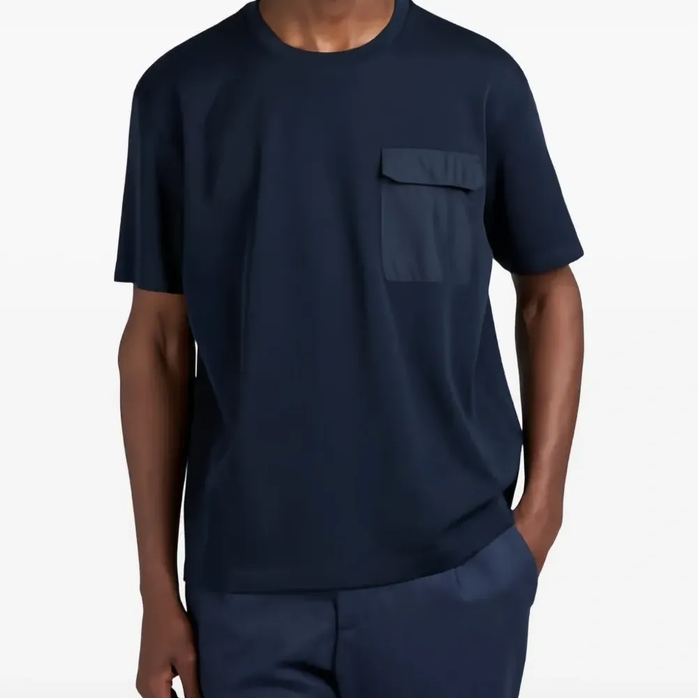 темно-синий смесь шерсти нагрудный карман с клапаном круглый вырез короткие рукава прямой подол