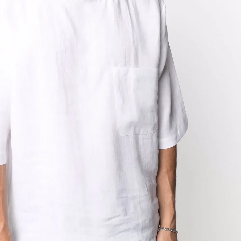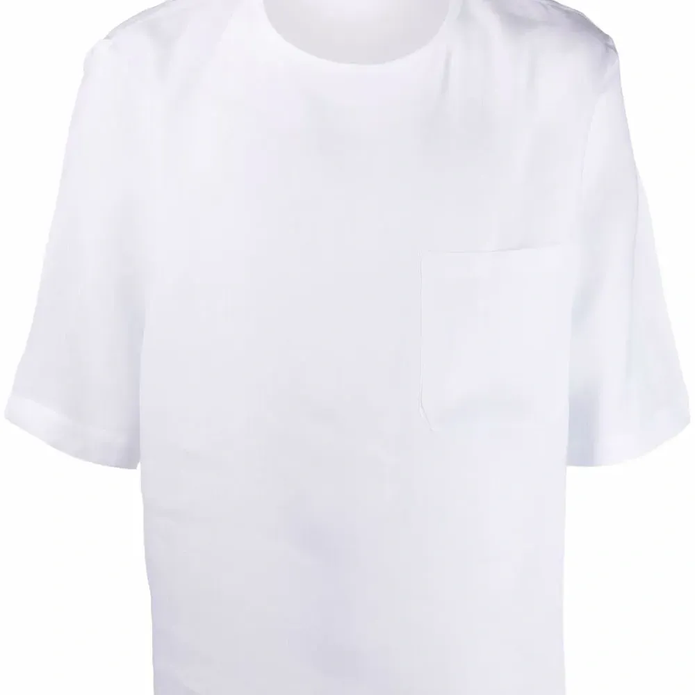 Нагрудный накладной карман, круглый вырез и короткие рукава. Цвет: белый. .