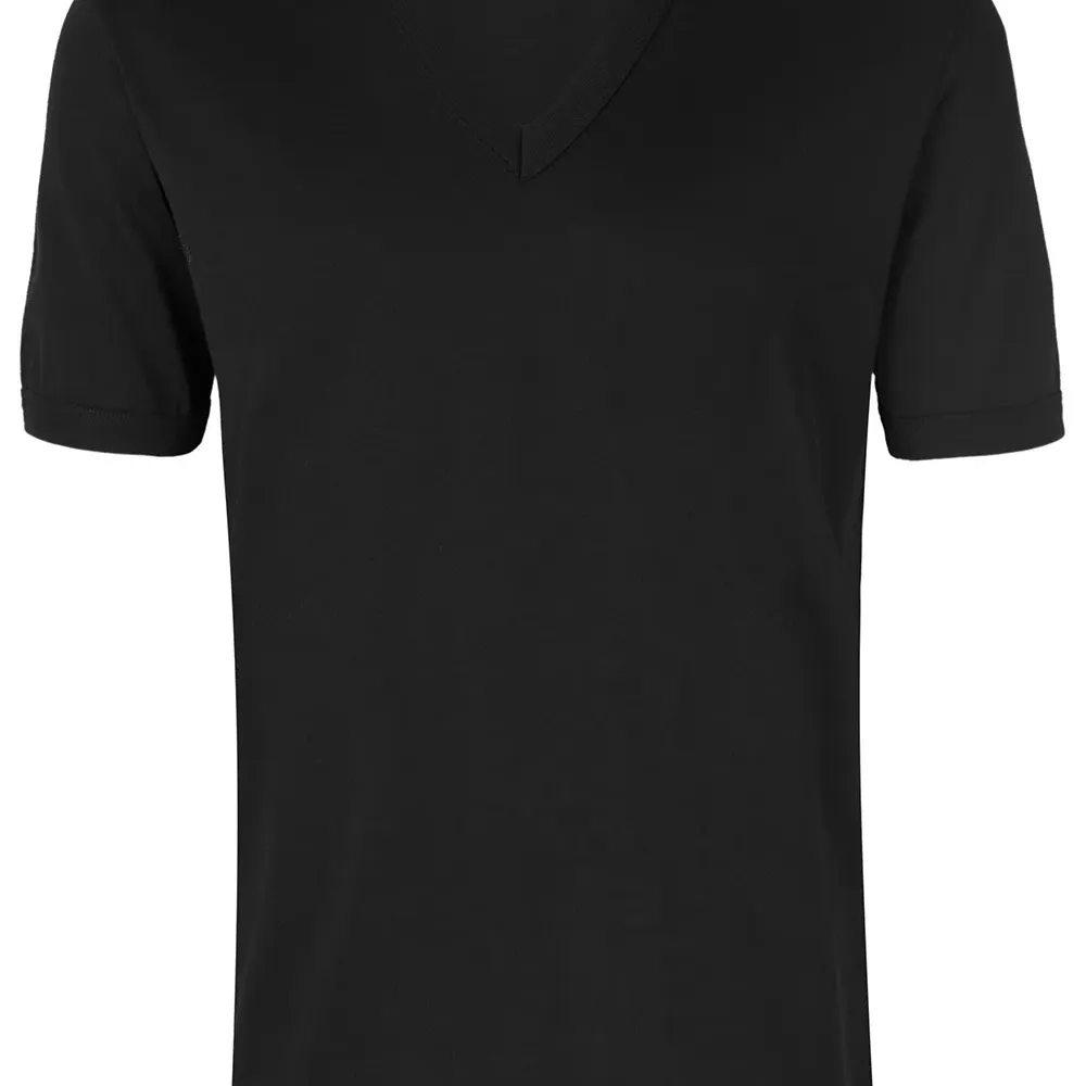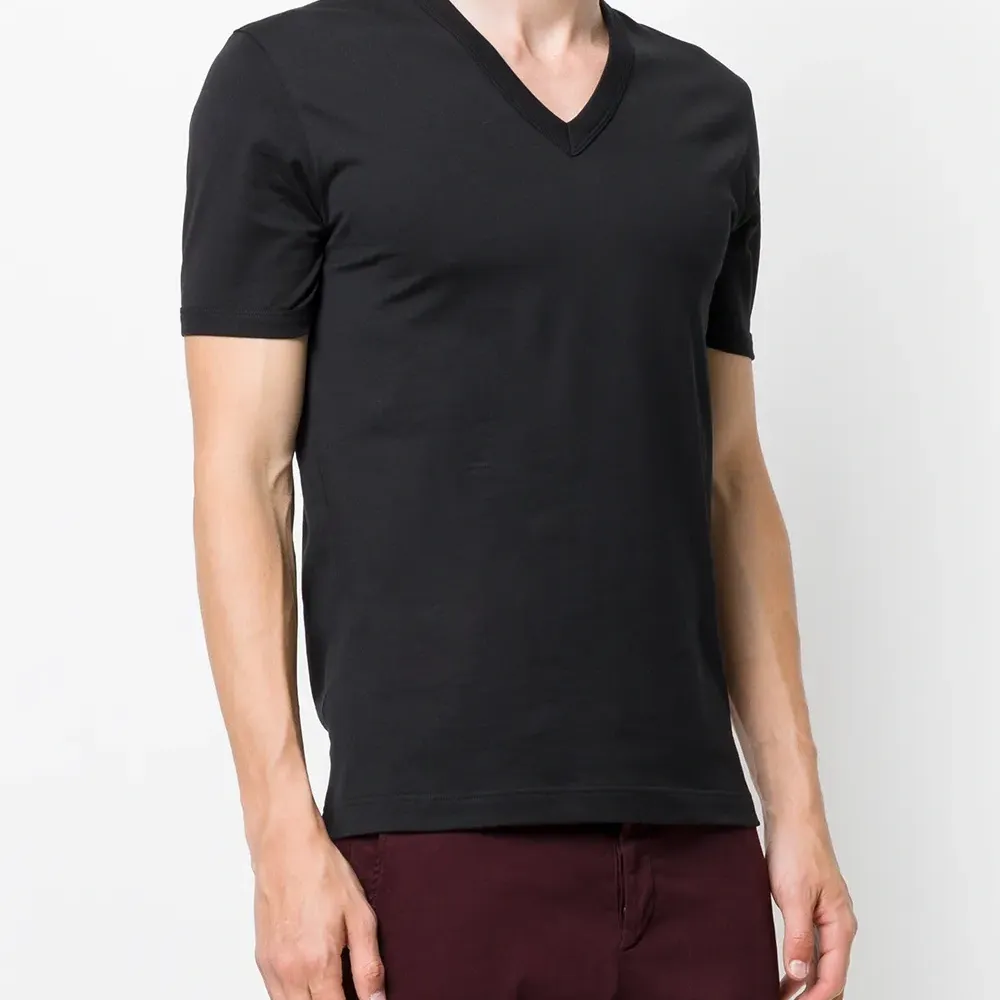 Черная хлопковая футболка с V-образным воротником от Dolce & Gabbana. Короткие рукава, глубокий V-образный вырез.