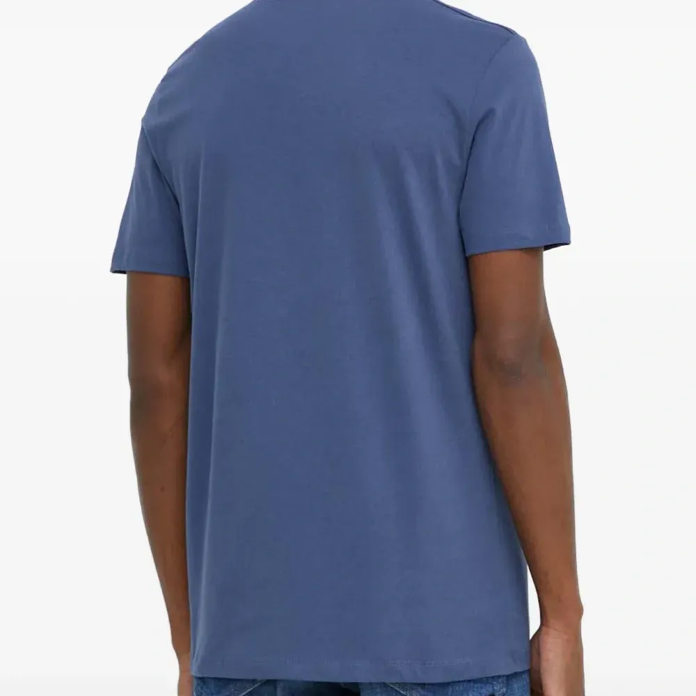 синий топ с вышивкой, круглым вырезом и короткими рукавами