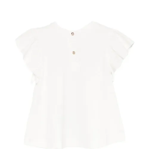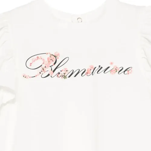кремовый цвет, принт с логотипом, рукава с рюшами, застежка сзади на кнопки