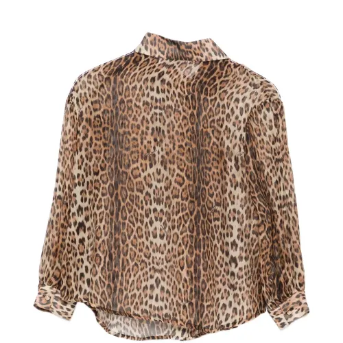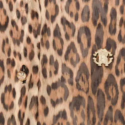 коричневая рубашка с леопардовым принтом, застежкой на пуговицы, длинными рукавами и классическим воротником