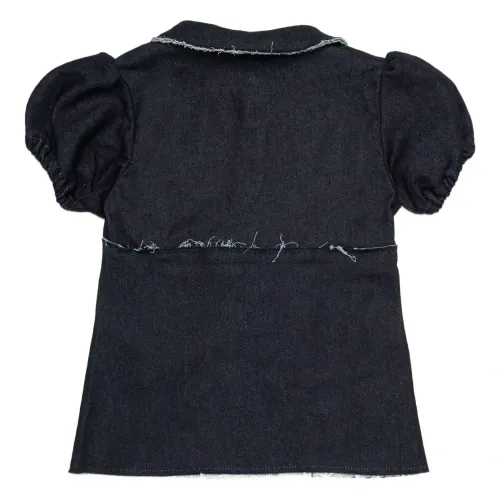 Джинсовая блузка с объемными рукавами