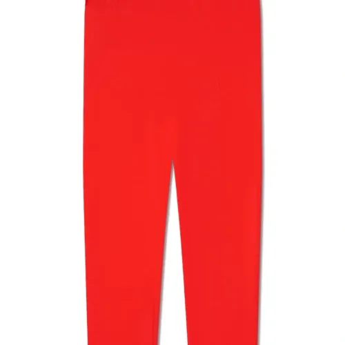 Ярко-красный, разноцветный, эластичный материал, пояс с логотипом и низкая посадка.