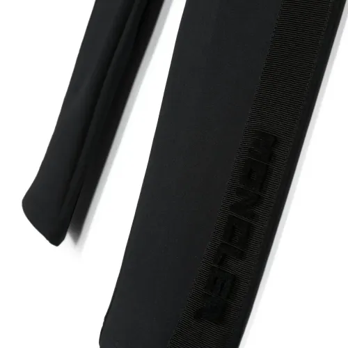 Черный, эластичный материал, отделка корсажной лентой, нашивка с логотипом спереди, тисненый логотип сбоку, эластичный пояс, зауженный крой и облегающий крой.
