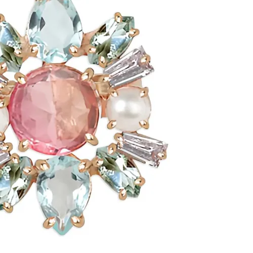 14-каратное желтое золото 100%, Речной жемчуг 100%, Турмалин 100%, Синий топаз 100%, Хрусталь 100%