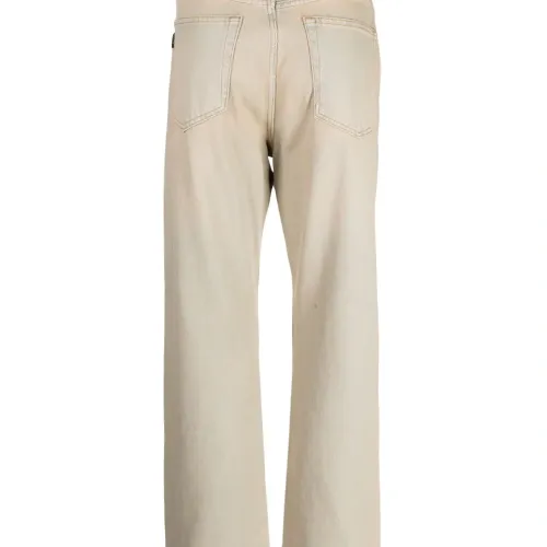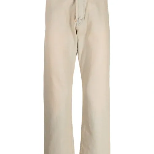 Песочно-бежевый, органический хлопок, обработанный деним, окрашивание готовой вещи по технологии garment dye, искусственно состаренное покрытие, нашивка с логотипом сзади, потайная застежка на молнии и пуговицах, широкий крой, пять карманов и прямой подол. Узнать больше о том, какие товары получают отметку «Ответственный выбор», можно из материала «Как мы оцениваем экологичность и этичность».