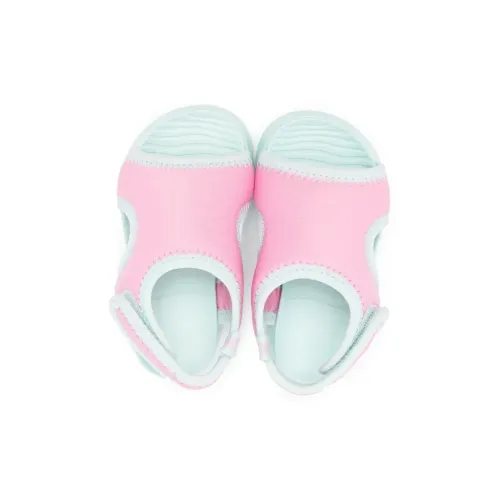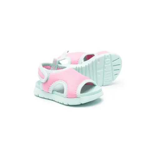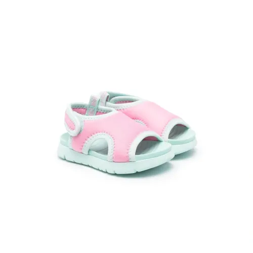 Пастельно-синий, розовый, переработанный полиэстер, вырезные детали, закругленный открытый носок, застежка на липучке сбоку и плоская резиновая подошва. Этот товар как минимум на 50% состоит из переработанных или повторно использованных материалов. Узнать больше о том, какие товары получают отметку «Ответственный выбор», можно из материала «Как мы оцениваем экологичность и этичность».