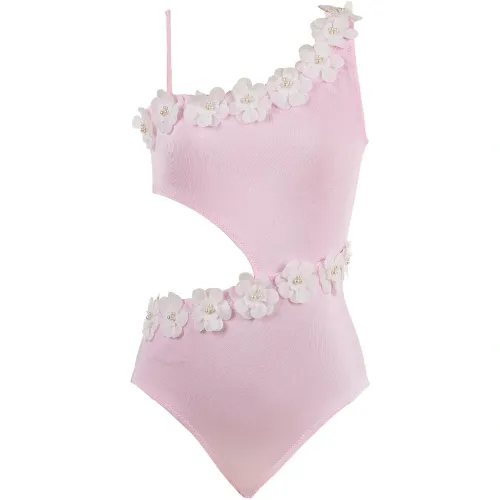 Слитный купальник с цветочными аппликациями и вырезами