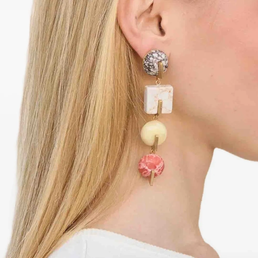 золото украшения из смолы с камнями квадратный камень круглый камень дизайн с подвеской застежка-клипса Серьги продаются в паре.
