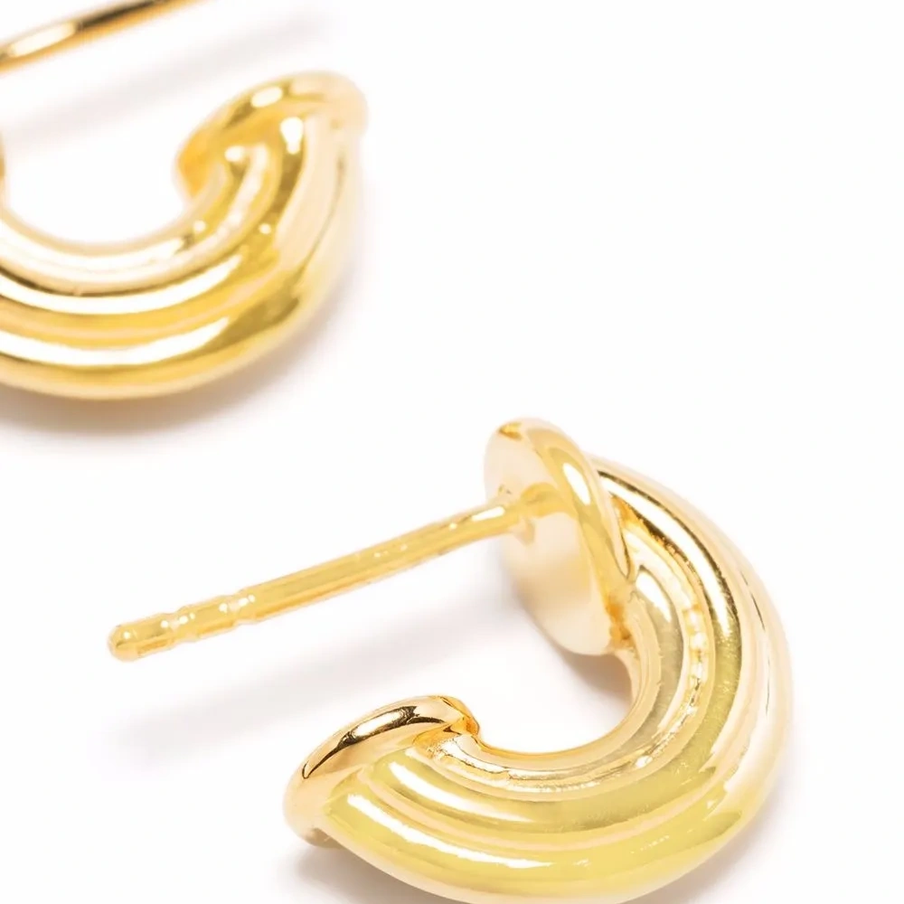 Позолоченное серебро 925 пробы (вермей), крупные кольца и для проколотых ушей. В комплект входят две серьги.