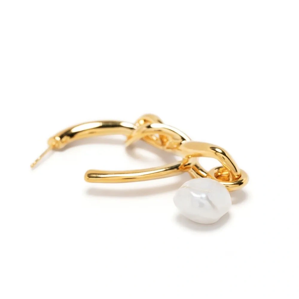 Золотистый, детали с жемчугом, серьги-подвески и застежка-штифт. В комплект входят две серьги.