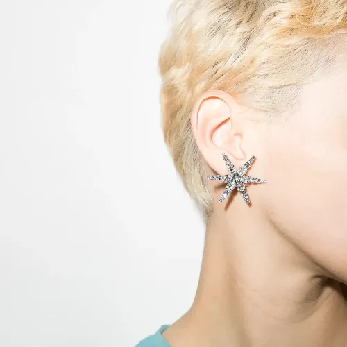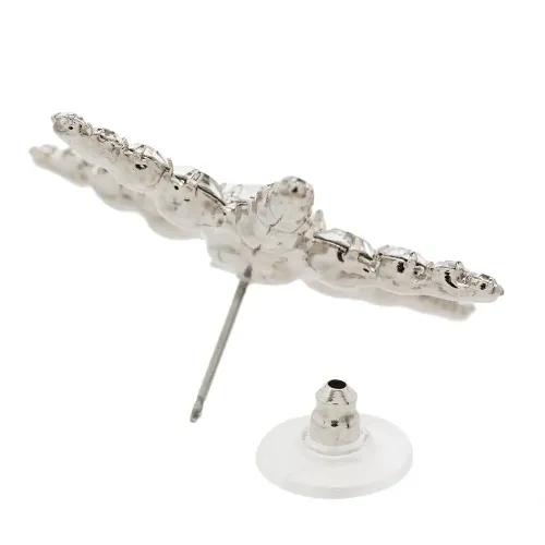 Серебристая фурнитура, латунь, декор из кристаллов и портфельная застежка. В комплект входят две серьги.