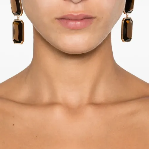 золотистый оттенок камни восьмиугольной огранки дизайн с подвеской застежка-гвоздик огранённые камни Серьги поставляются в паре. Обычное повседневное использование и внешние факторы могут уменьшать блеск драгоценных камней и золотых поверхностей. Для ухода используйте специальные неабразивные средства, предназначенные для чистки ювелирных изделий.