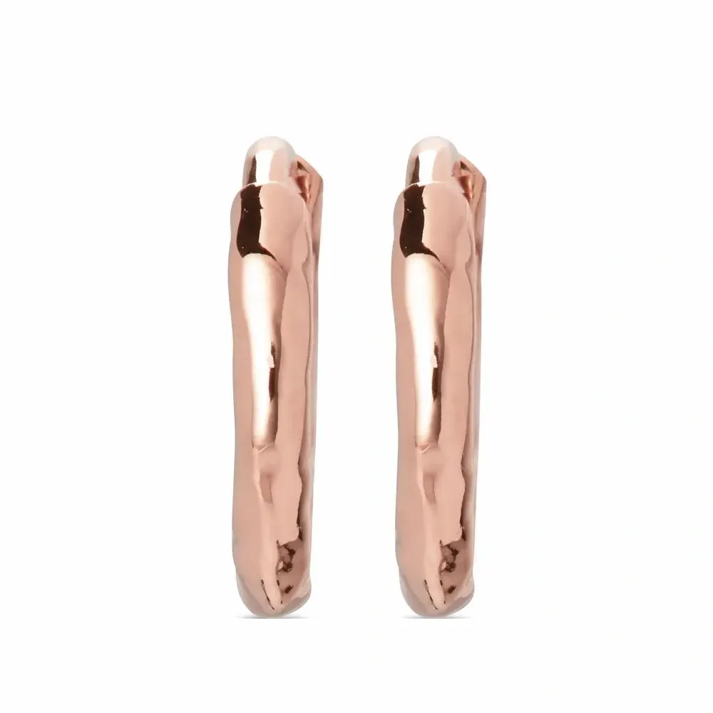 Фурнитура цвета розового золота, выгравированный логотип и серьги-хагги.