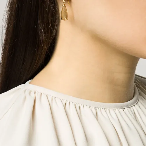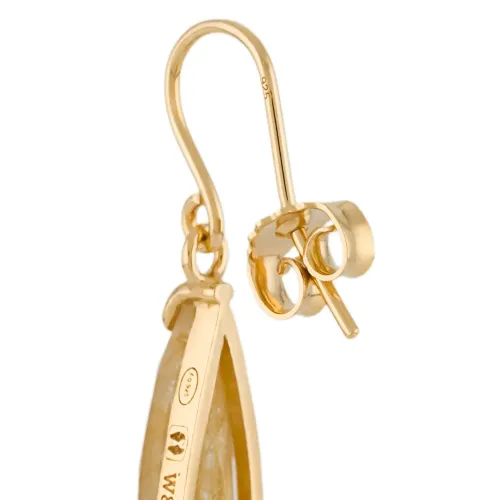 Позолоченные серьги с кварцем от Wouters & Hendrix. Инкрустация кварцем, застёжка на французский крючок и застежка-бабочка. Комплект включает в себя две серьги.