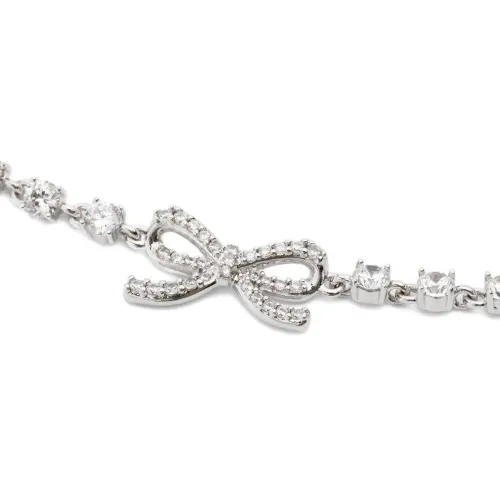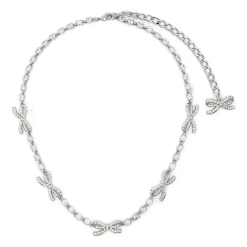 серебристый бант с кристаллами, декоративная цепочка, застёжка-карабин, регулируемая длина